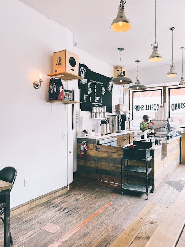 Northerly Coffee is purely a coffee shop - a vibe in and of itself. Located next to a record shop, the focus is simply on coffee. Rather than eating or socializing, it's a good spot to enjoy a quiet cup of coffee alone. It's usually quiet, and, being near the Marcy JMZ, most people take their coffee to go. In fact, they provide cute stickers to place over your lid, to keep your coffee from spilling out during your commute.