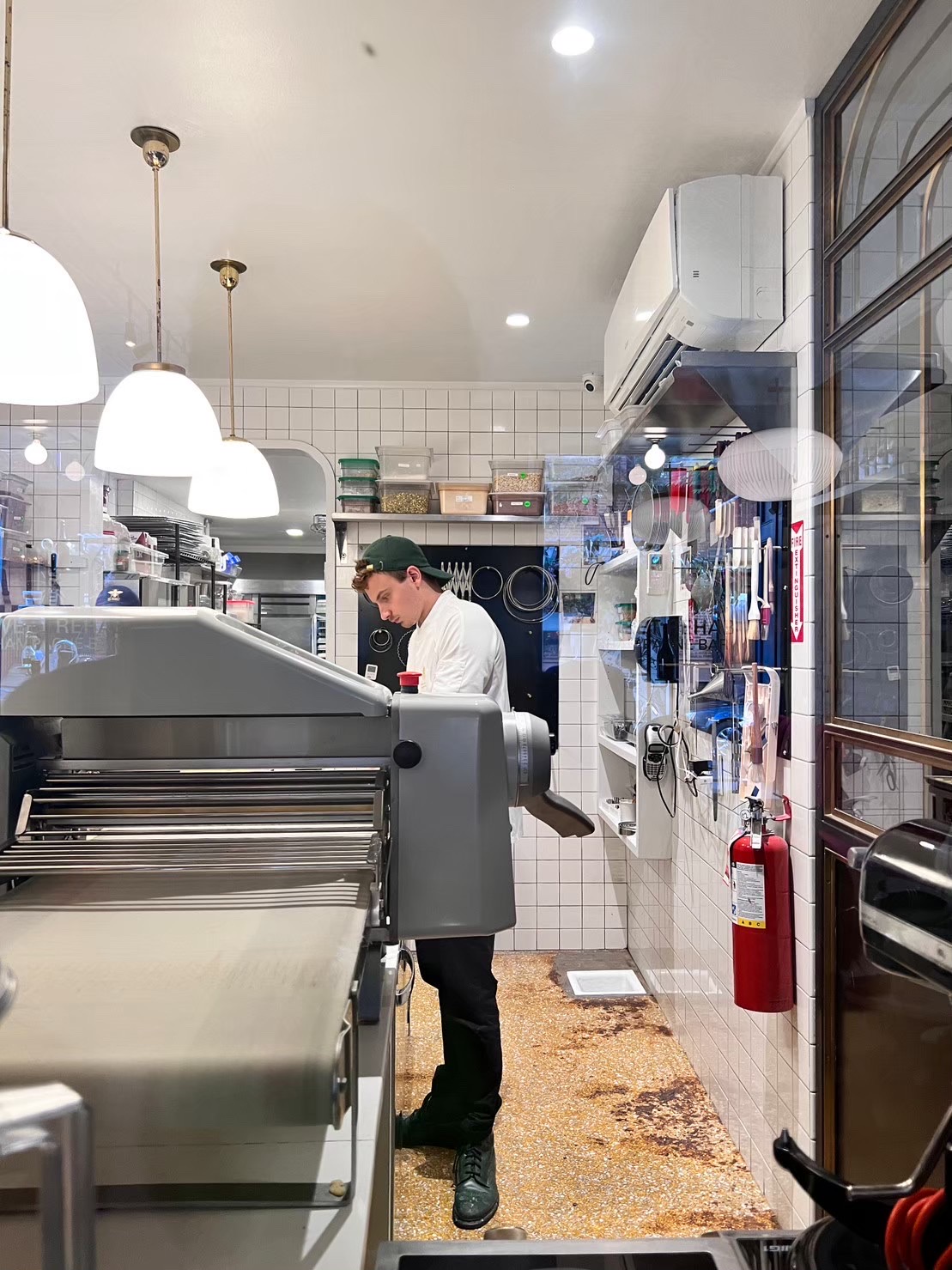 Upon opening the striking blue door, one is first surprised by the jewel-like display of sweets, including Danish bread with its wavy form and cakes filled with beautiful layers in glass jars.