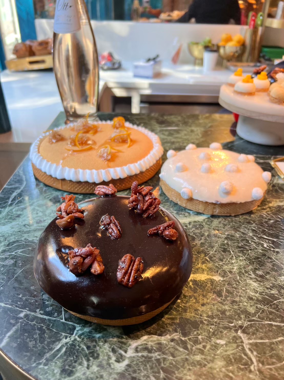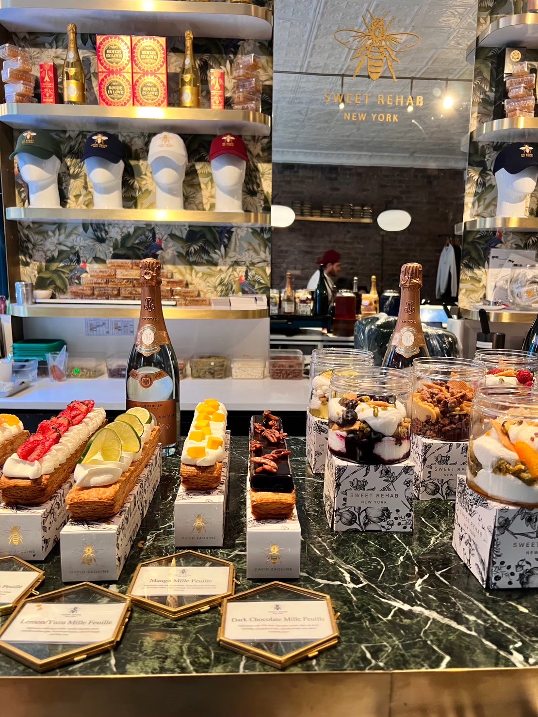 Behind the glass window is the kitchen, where visitors can enjoy watching the pastry chefs at work in meticulous detail. Inside, there is an eat-in space with several seats, where you can enjoy champagne, wine, and tea, which can only be tasted in France. The interior design is all imported from France, so you can enjoy an authentic French atmosphere while in New York. Open until midnight, you can visit for dessert after a long night of drinking.